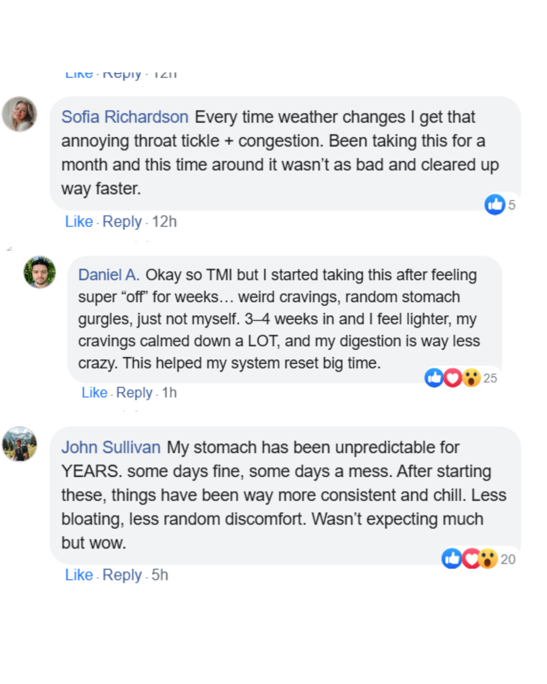 Together, they do what single-ingredient supplements can't. Kill the bacteria, yeast, and parasites making you miserable. Calm the inflammation behind the bloating, fatigue, and brain fog. Absorb fully — not just pass through like cheap supplements. This is why 150,000+ customers reorder. Why 94% feel the difference within 2 weeks. No antibiotics. No prescriptions. No more guessing if it's working.