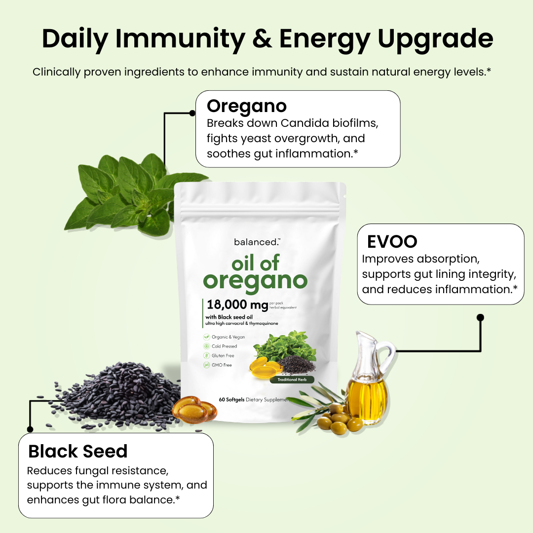 - Black Seed Oil (Thymoquinone) — amplifies oregano's effects while adding anti-inflammatory and immune support your body craves